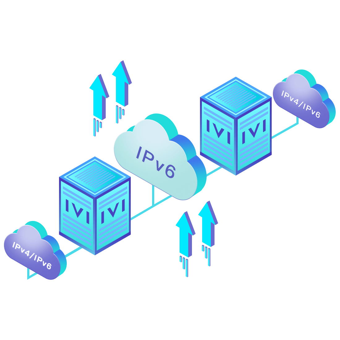 對(duì)正在進(jìn)行IPv6整體升級(jí)規(guī)劃的運(yùn)營(yíng)商,應(yīng)用IPv6升級(jí)方案2.5,通過(guò)IVI無(wú)狀態(tài)翻譯技術(shù)和純IPv6接入網(wǎng)絡(luò),為雙??蛻?hù)端和雙棧服務(wù)器提供連通服務(wù)。